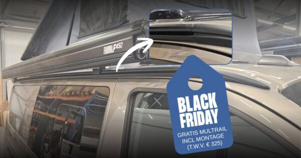 Profiteer nu van de kortingEen multirail is een stevige aluminium rail die langs de zijkant van uw bus wordt gemonteerd. Hiermee kunt u eenvoudig een luifel, voortent of andere camperaccessoires bevestigen.